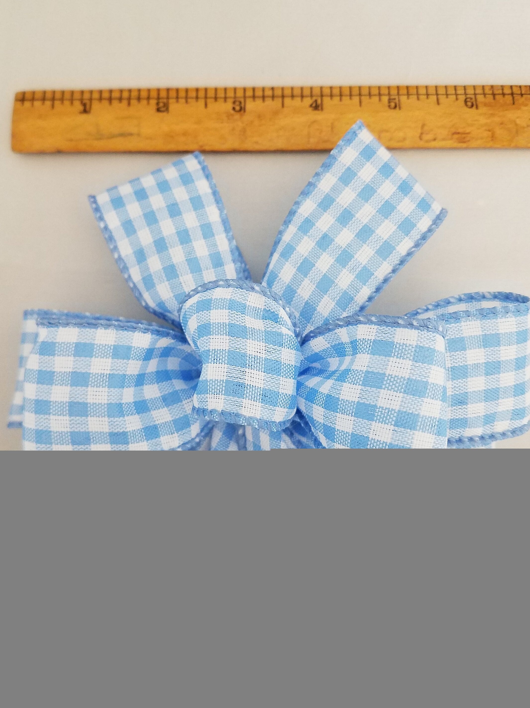 A hand-made bow ideal for decorating either indoors or outdoors. This bow measures about 5-6" across and about 10-11" from top to the bottom of the tail. It is made using 2 yards of 1.375" wide ribbon (#9) and has 9 loops. It is the perfect size for most smaller wreaths, swags, door decorations, fences, etc. Check my listings for several other sizes and colors of bows. Thank you!