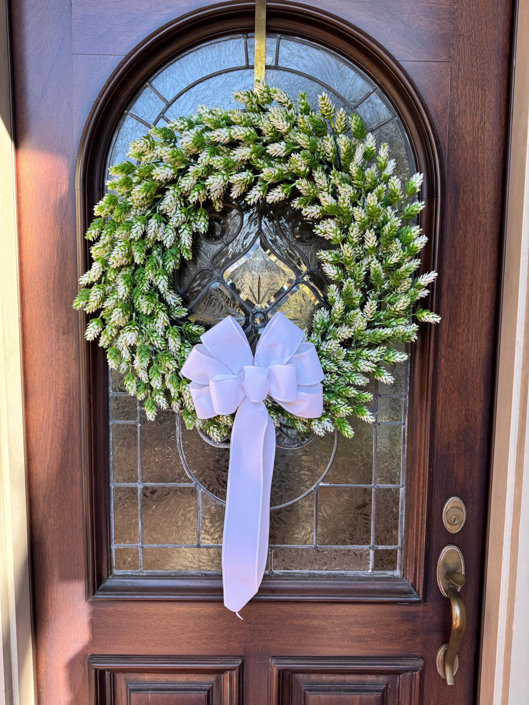 The white bow is beautiful and will add to the Christmas season of joy just by looking at it on my wreath.