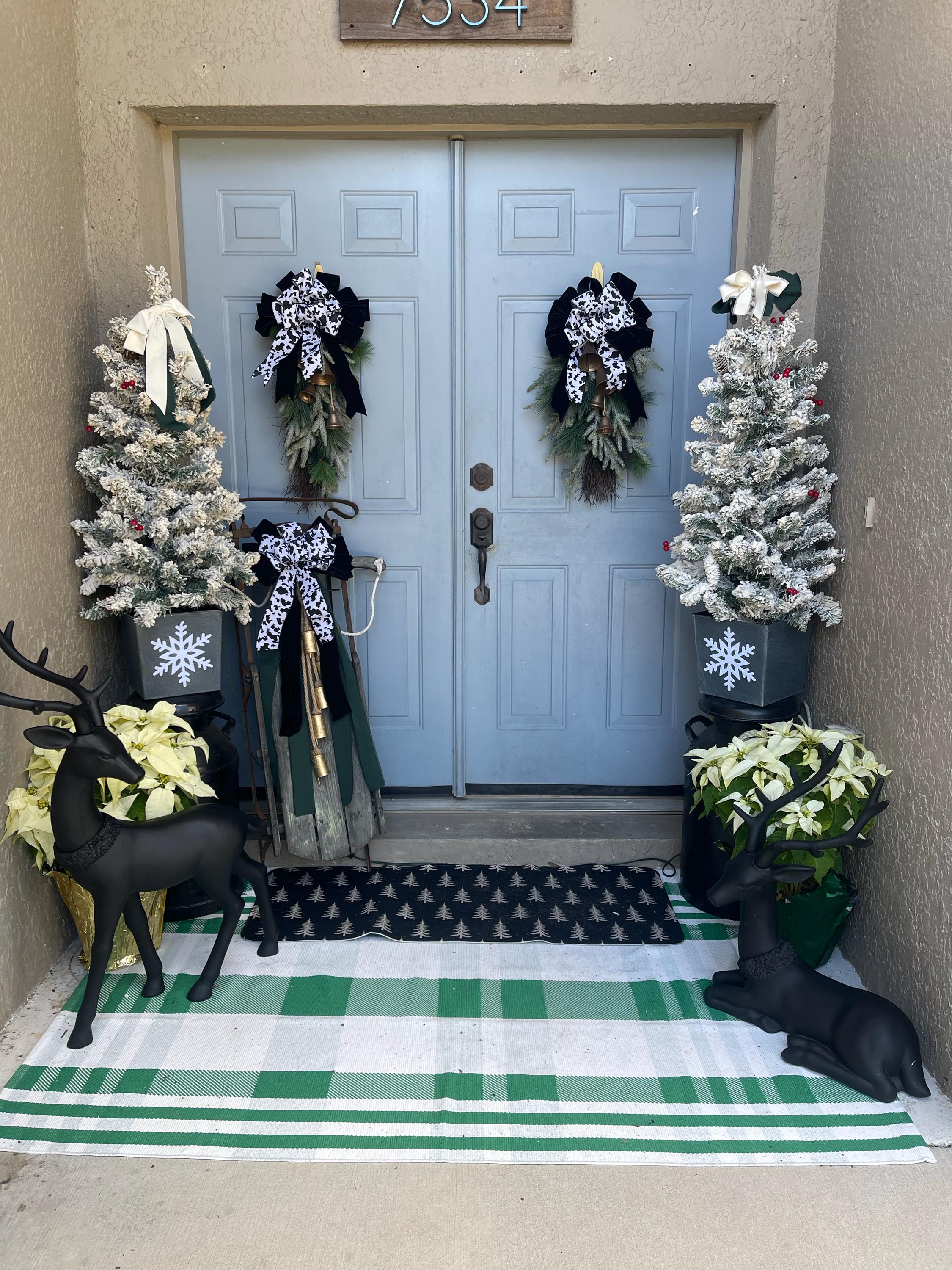 Large Bows measures 10" across and are ideal for wreaths 22-24" across. This is the standard size of most Christmas door wreath.